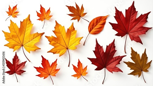 Collection of multicolored fallen autumn leaves isolated on a white background.