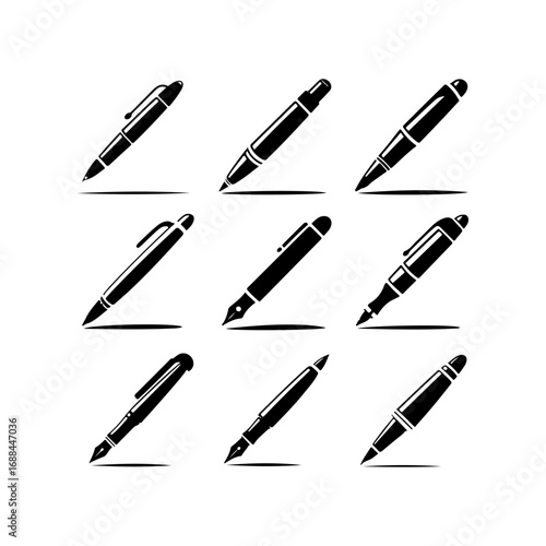 Collection of nine classic and modern pens offering diverse writing styles and designs for artistic and professional use vector
