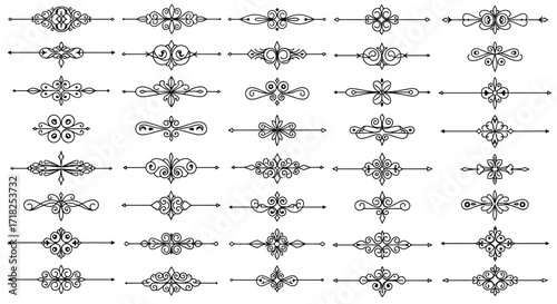 Collection of ornate vintage decorative flourishes and dividers for design projects
