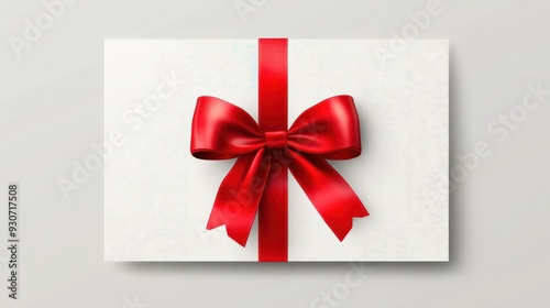 Collection of PNG. Blank white gift card with red ribbon bow isolated on a transparent background.