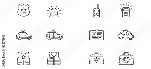 Collection of police icons depicting law enforcement and related symbols in outlined style