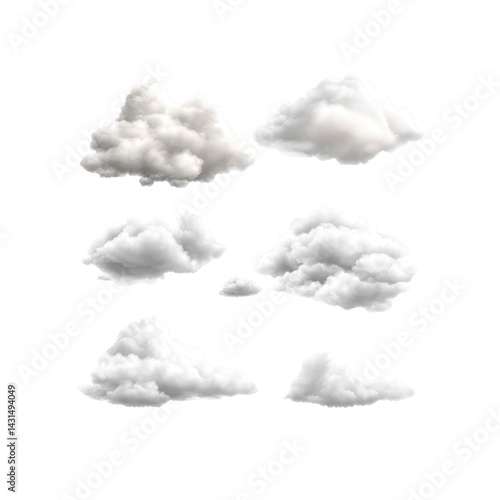 Collection of Realistic White Clouds Isolated on Transparent Background