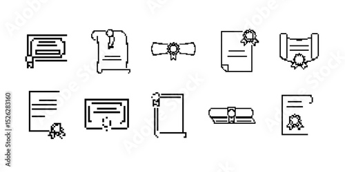 Collection of retro-style pixel icons showcasing document themes in a mosaic format.