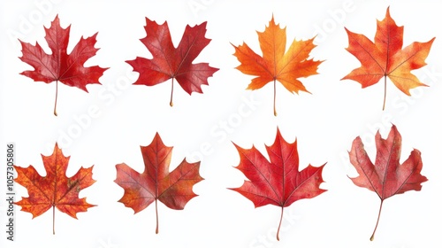 Collection of rich red and orange maple leaves, perfect for fall-themed designs, isolated on transparent background