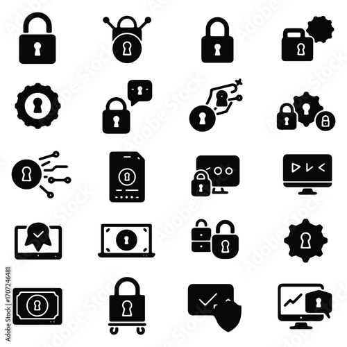 Collection of Security and Privacy Icons representing Network Protection and Cyber Safety Measures for Online Security Solutions