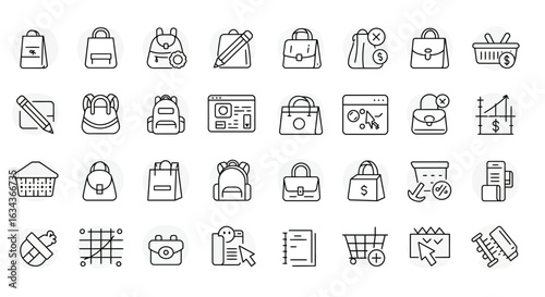 Collection of shopping, ecommerce, and education icon vector designs for web apps