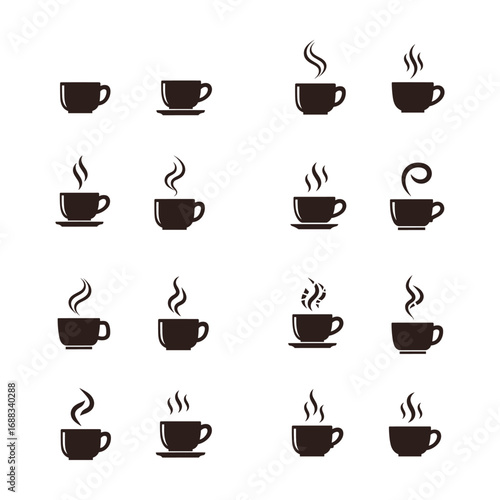 Collection of Simple Steaming Coffee Cup Icons: Minimalist Design