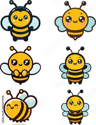 Collection of six cartoon bees with different expressions