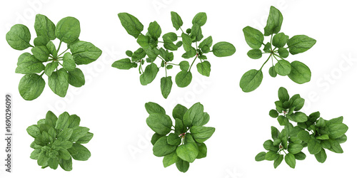 Collection of Spinacia plants on transparent background from the top view