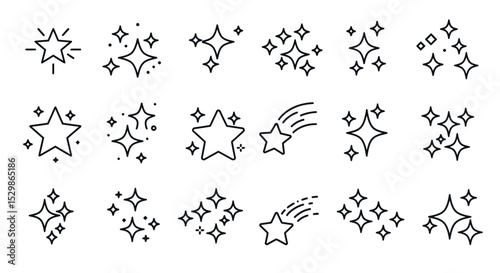 Collection of star and sparkle outline icons in various arrangements vector illustration