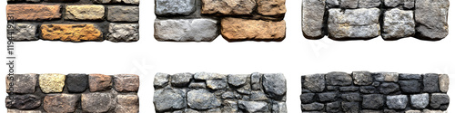 Collection of Stone Textures, Various Colors & Styles, Isolated on White Background.