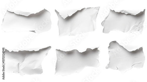 Collection of torn and crumpled pieces of white paper on a transparent background, showcasing various shapes and textures for creative design and digital projects.
