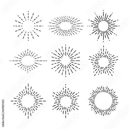 Collection of trendy hand drawn retro sunburst or bursting rays design elements. Set of sunburst icon collection vector.