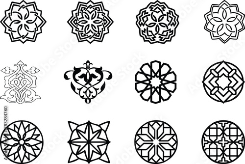 Collection of twelve intricate geometric islamic patterns and arabesque designs