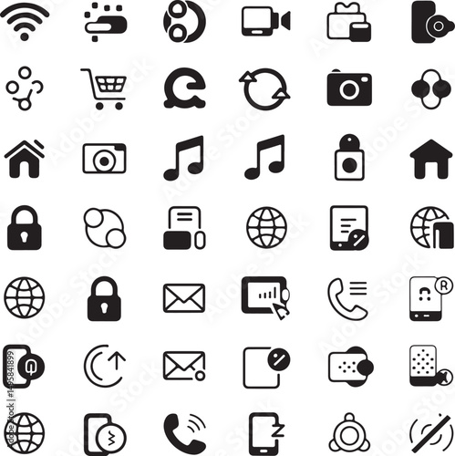 Collection of Universal Black Glyph Icons for Web and App Design