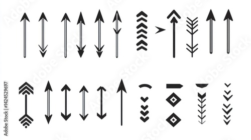 Collection of various arrows; up, down, left, right; design elements; website or app interface