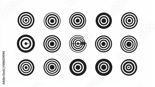 Collection of Various Black Target Icons, Ideal for Achievement Concepts