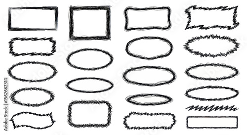 Collection of Various Hand-Drawn Decorative Borders and Shapes in Different