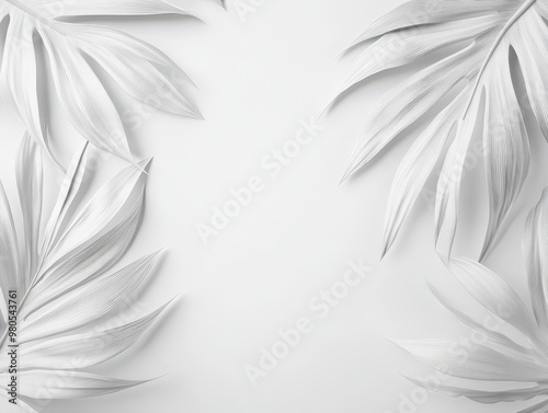 Collection of White Palm Leaves Tropical Background, Space for Text