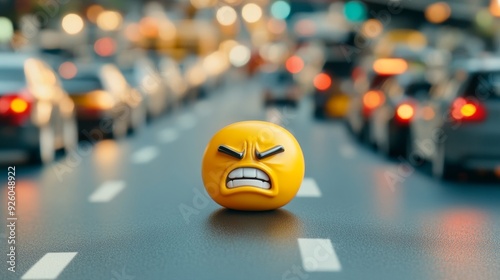 Collision Frustration: Angry Emoji and Fender-Bender Symbolize Minor Car Accident Stress in Urban Setting