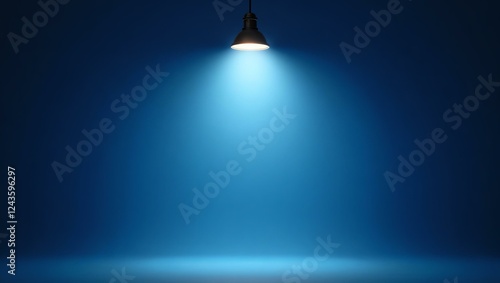 Color cobalt blue backdrop with an aesthetically positioned spotlight lamp at the top, casting soft, evenly distributed light across the scene