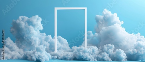 Color of the year 2020: Classic blue clouds with white frames. 3D rendering.
