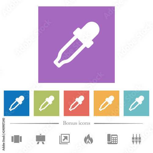Color picker flat white icons in square backgrounds