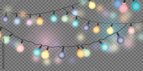 Color String lights illustration on a transparent background - Isolated design elements