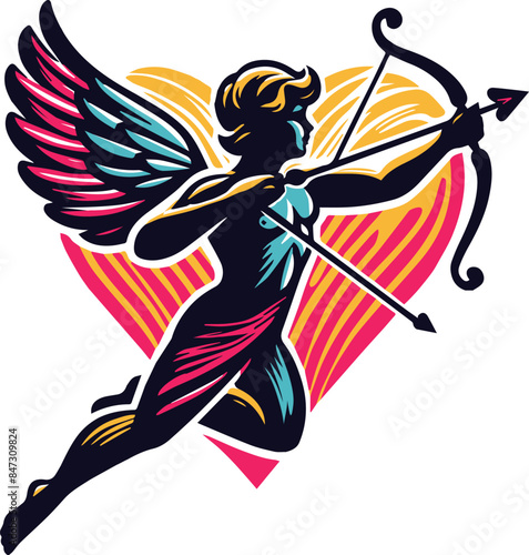 Colored and vibrant silhouette vector of cupid symbolic image of love