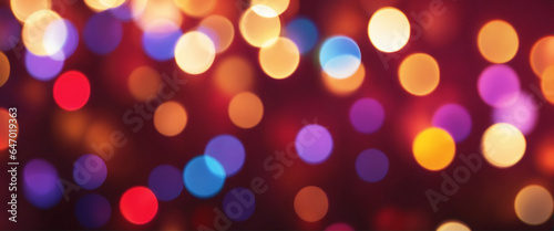 Colored Christmas illustration with blurry lights and bokeh effect. Generative AI