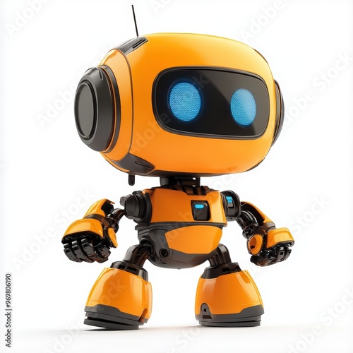 Colored cute and funny 3d robot modern style isolated on white background. Cartoon style character.