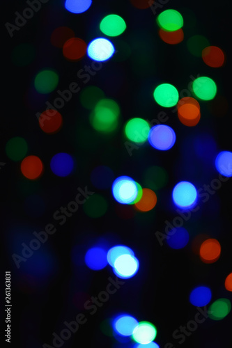 Colored lights (garland) in the dark. Bokeh effect Festive illumination.