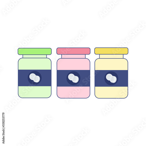 Colored pill bottles. flat icon isolated on white background. Vector illustration.