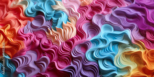Colored surface consisting of wavy surfaces. The undulating surface creates a sense of movement. Generative AI