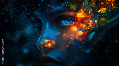 Colored surrealistic portrait on a dark background