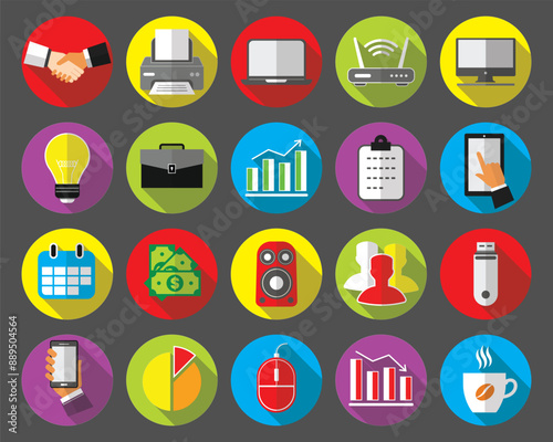 Colored trendy office work and management elements vector illustration, icon set business vector illustration