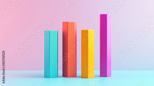 Colorful 3D bar chart against a pink and blue background.