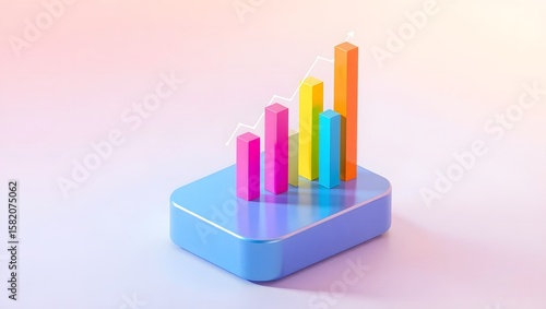 Colorful 3D bar chart with an up arrow illustrating business growth and financial success