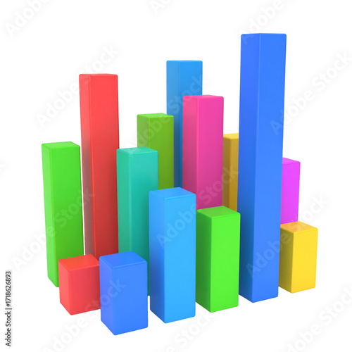 Colorful 3D bar graph showing data growth, against a black background for data visualization