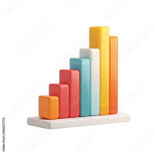 Colorful 3d bar graph showing upward trend isolated on transparent background