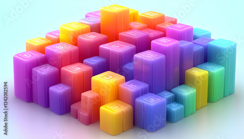 Colorful 3D blocks forming an abstract landscape, exhibiting variations in height and hue