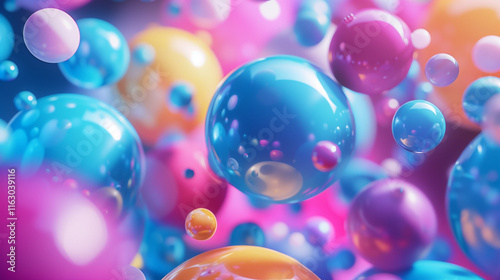 Colorful 3D Bubble Illustration with Vibrant Spheres on Pink and Blue Background for Abstract Art and Design Projects