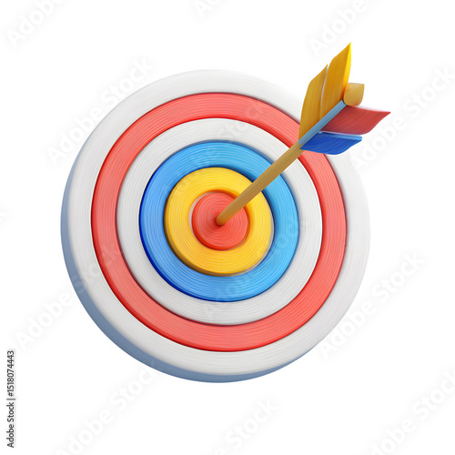 Colorful 3D Render of an Arrow Hitting the Bullseye of a Target isolated on transparent background