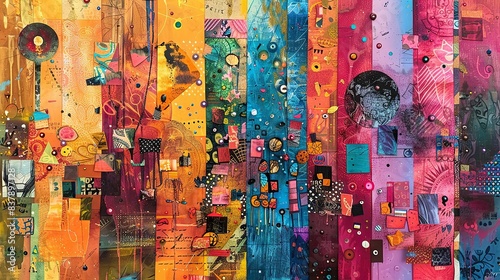 Colorful abstract art with various shapes and textures