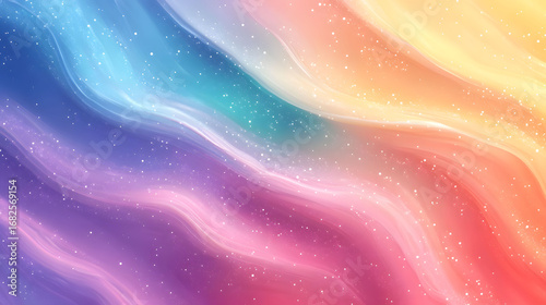 Colorful abstract background featuring a soft wavy rainbow gradient texture with a magical sparkling glitter effect