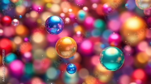 Colorful Abstract Background Featuring Shimmering Bubbles and Dazzling Lights Creating a Vibrant and Festive Atmosphere Ideal for Various Creative Projects