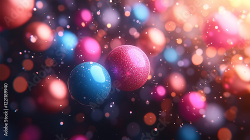 Colorful abstract background featuring vibrant spheres and sparkling effects, creating a festive and joyful atmosphere