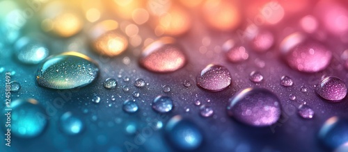 Colorful abstract background featuring water droplets on a surface with a blurred gradient for a vibrant artistic effect.