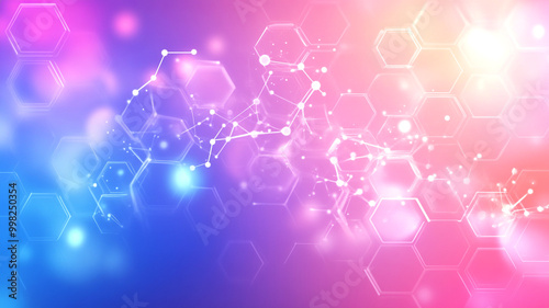 Colorful abstract background with hexagonal patterns and glowing elements in pastel shades