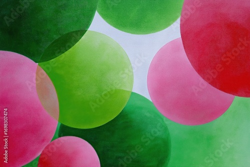 Colorful abstract composition with green and pink overlapping circles